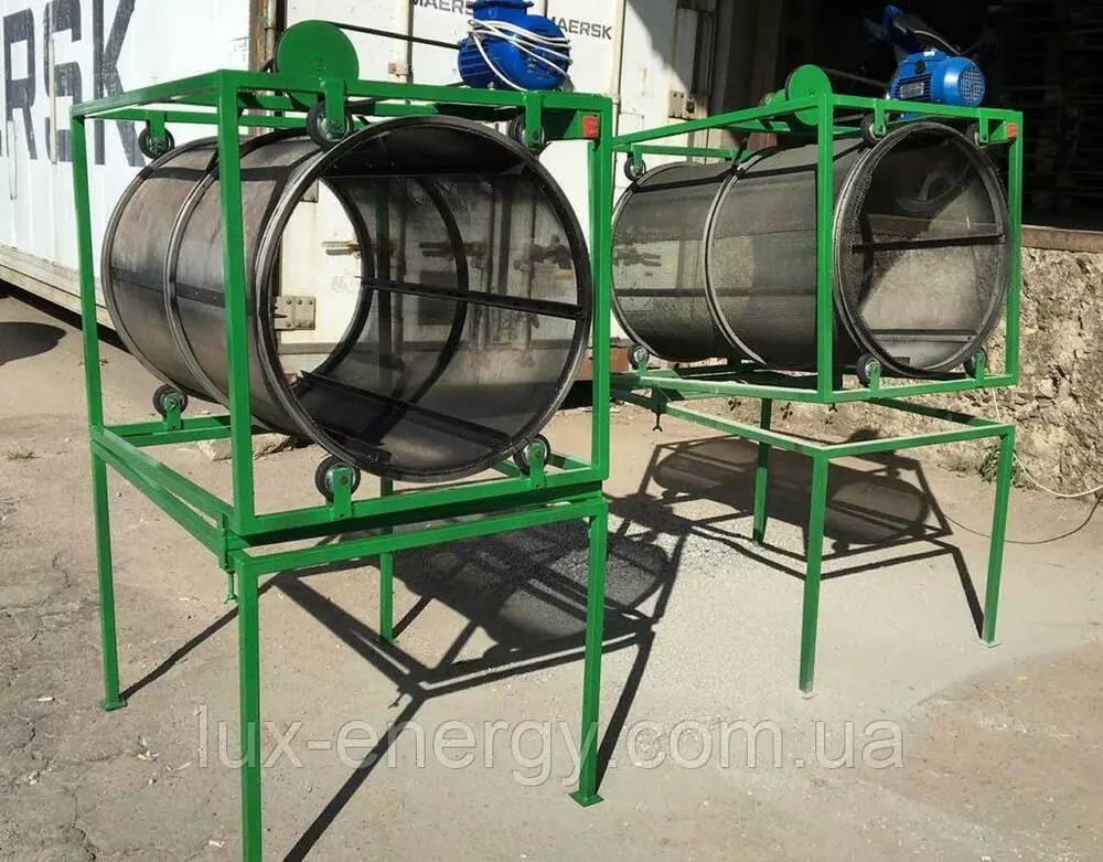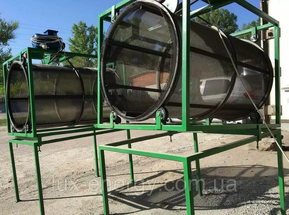 Установка складається з дротяної сітки та укріплена листовою сталлю і латами з профільної труби. Для розщеплення сировини на дві фракції і більш доступні варіанти різних розмірів отворів сита.