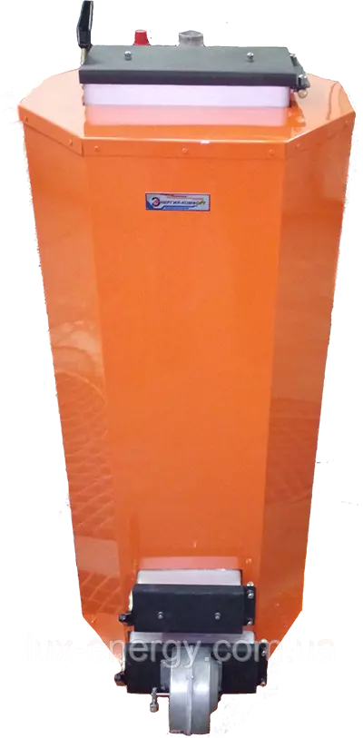 Горение топлива происходит в нижней части котла, оборудованной проточными колосниками. Загрузка топлива значительного объема позволяет обеспечить его горение в течение значительного периода (4-20 суток, в зависимости от теплопотерь здания и качества топлива). Загрузка топлива ручная, удаление шлака ручное.
