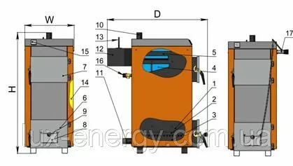 | Вес котла без воды | кг | 115 | 170 | 205 | 260 | 310 |