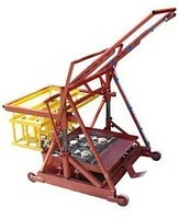 Произвести вибрацию в течении 20с, когда прижимная рамка опустится до своих ограничителей — взять двумя руками за подъемный рычаг и произвести подъем матрицы. Поднятие матрицы производить с включенным вибратором (вибрация должна быть небольшой). После поднятия матрицы ограничитель сам зафиксирует матрицу в поднятом состоянии. После этого перекатить станок назад на ширину шлакоблока и повторить цикл.