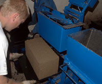 Численность рабочих — 3 человека: работа с бетоносмесителем (загрузка компонентов, приготовление смеси), загрузка смеси в установку, формование блоков.